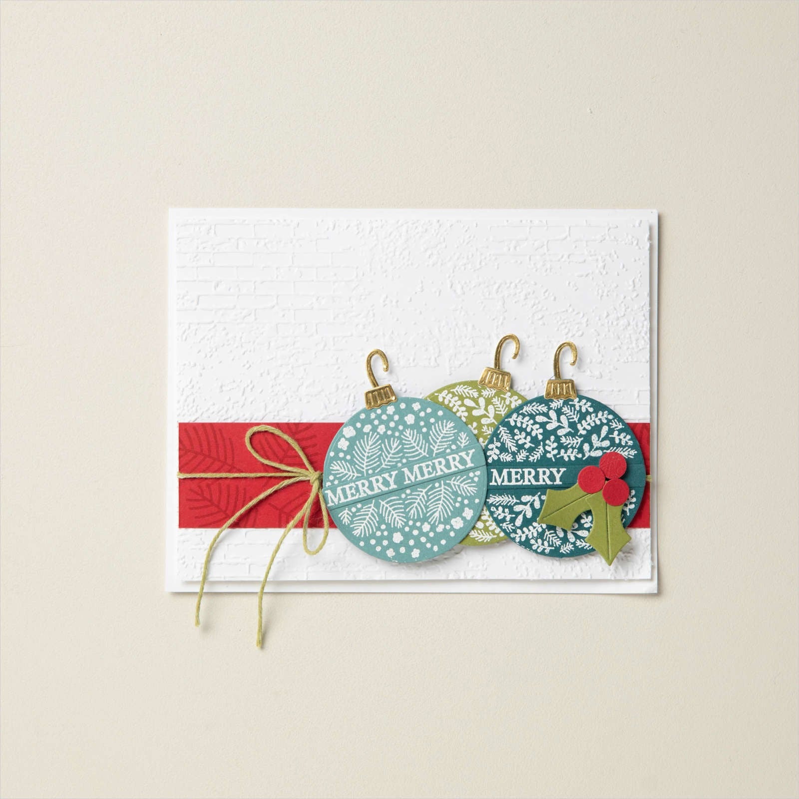 Use coordinating stamped and die-cut ornament images with seasonal greetings to personalise your Christmas crafting projects. Make pop-out cards, tags, home decor, and more in the Christmas colours of your choice!