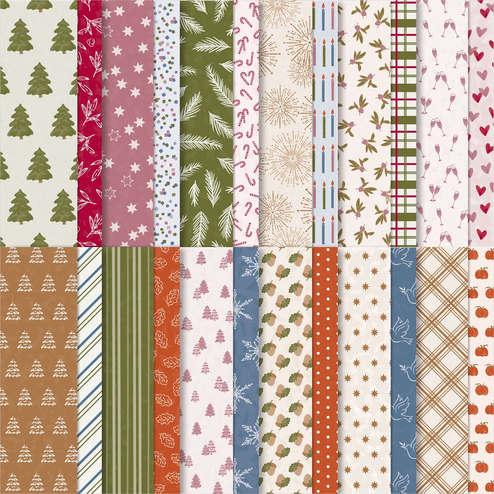 * 12 sheets of patterned paper: 1 each of 12 double-sided designs