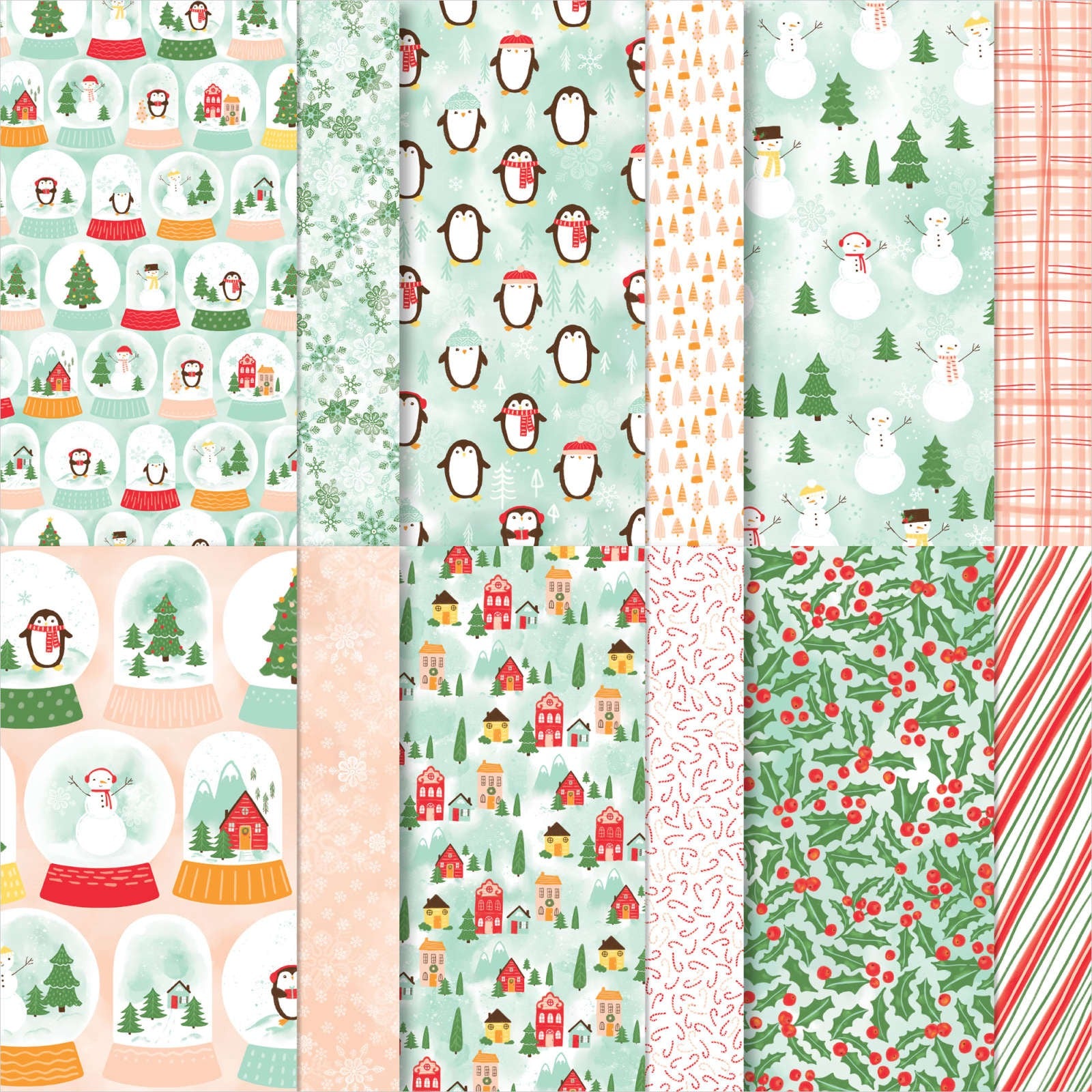 The Snowy Scenes 12" x 12" (30.5 x 30.5 cm) Designer Series Paper will have you walking in a winter wonderland with charming images of penguins, snowmen, snow globes, candy canes, villages, and other Christmas-inspired designs. The pastel peach and mint colour scheme is a unique take on classic Christmas colours, perfect for both young and old. Use for festive greeting cards or Christmas scrapbook spreads.